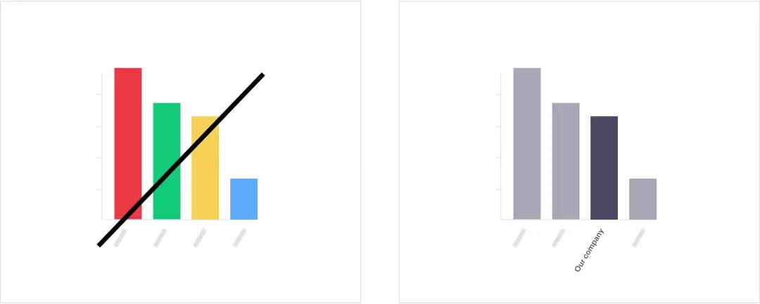 当你想要强调数据时,可以使用更亮的颜色。比如你的公司与竞争对手相比较时,或者你可以在现有颜色基础上加深颜色。