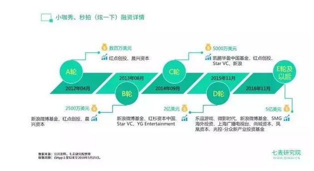 而同属于一下科技旗下的“小咖秀”、“秒拍”也一直作为新浪微博的官方短视频产品,2016年融资已达E轮以后,融资金额高达5亿美元。