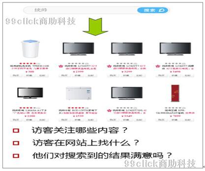 通过站内搜索分析,可以统计访客搜索最多的内容和搜索频率,以及对搜索结果的点击情况,可以指导网站运营人员对搜索结果进行优化,提高热门内容的搜索命中率,同时对无搜索结果的关键词进行内容补充。