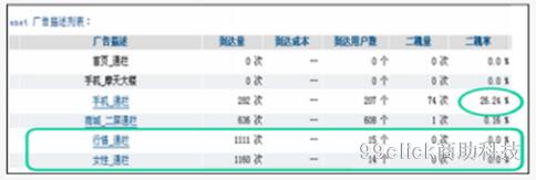结合站内广告的点击量、转化量及站内广告所在页面的浏觅量,分析站内广告的点击率,从而了解用户对站内广告的参与度。及时调整优化广告方案,做到快速有效的活动推送。