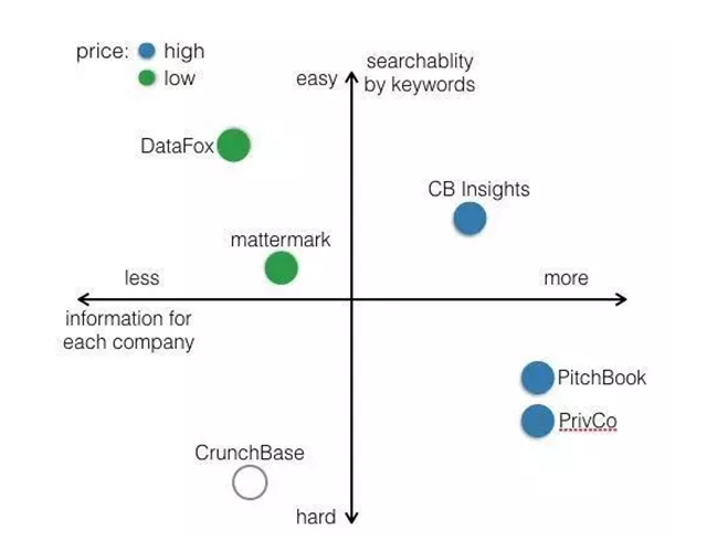 因为我对CBInsights一年的订购期马上就要结束了,所以最近我对几家私企数据库进行了比较。我随意申请试用了一些相似的服务并进行了全面的比较,不过我一开始并没打算这样做。但既然我已经做了一个26栏的表格对PitchBook,PrivCo,DataFox,Mattermark,CBInsights进行了仔细的分析,我和愿意和大家分享我的发现。