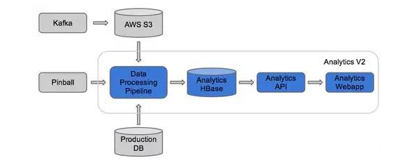 Pinterest团队不仅需要追踪大量客户相关的数据。像其他社交平台一样,他们还需要向广告商提供详细的分析。黄彤波在《Behindthe Pins:Building Analytics at Pinterest》一文中写道:为了满足这一需求,他们改进了自己的分析堆栈。以下是Pinterest团队如何使用Apache Kafka,AWSS3和HBase的示意图: