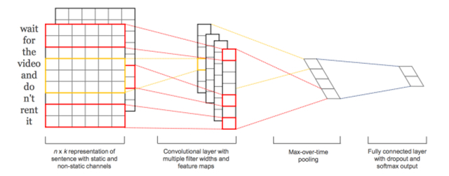 最普通的基于CNN的方法就是Keras上的example做情感分析,接Conv1D,指定大小的window size来遍历文章,加上一个maxpool,如此多接入几个,得到特征表示,然后加上FC,进行最终的分类输出。