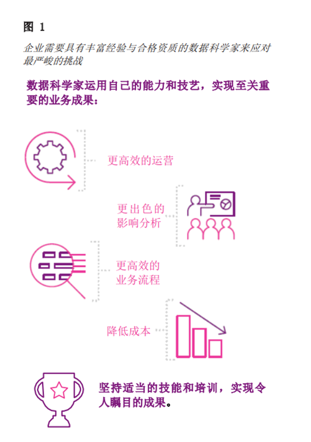 这种供需之间的不平衡给求贤若渴的高管层带来了风险。要获得深入洞察,解决企业所面临的最大挑战,也就是运营优化、创收和创新,就需要真正的数据科学家发挥自身所具备的科学和艺术才能;如果数据科学家经验不足,或者未经过充分培训,那么他们所采用的错误方法或有缺陷的分析可能会导致灾难性后果(见图 1)。