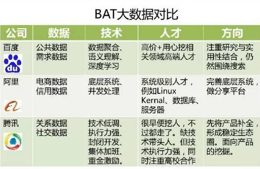 BAT三家公司,数据体积相差不会太多,三家几乎都有LBS、交易、社交等一系列不同维度数据,只是能力有所区别。