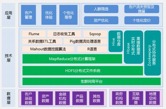 个性化推荐:通过客户管理形成的细分客户,用大数据技术智能化分析细分客户的需求,如客户的理财偏爱好、年龄等,因人而异,实施精准化、有针对性的产品及服务推荐。资产优化:基于全方位的数据记载,构建可视、可控、动态、协同及精细化的资产管理方案,支撑金融业及其客户的财务转型等功能;以及构建一套智慧财资的体系,提升资源整合的力度,实现高效的价值创造。
