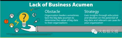 首先是缺乏商业嗅觉。部分公司或机构领导者有时缺乏足够的商业嗅觉,以致于不清楚大数据能够给组织所带来的价值。