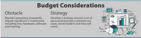 最后是预算考量。运作大数据经常需要重大的IT投入,其中就包括购买新的软硬件,以及培训人员。