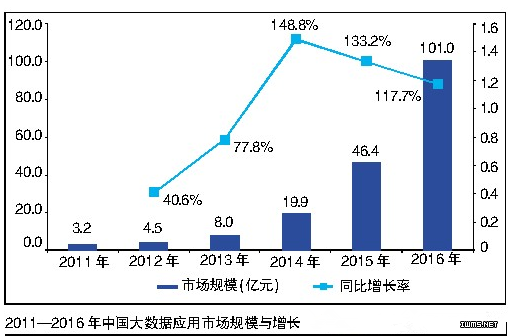 而随着工业4.0的发展,大数据产业的发展市场也应运而生。这是国内的某研究机构统计的发展趋势图。可以看到大数据产业的规模基本上是呈现递增趋势的。
