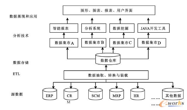 由于商务智能信息流的上游是异构的,而且数据往往分布在企业或机构的不同部门、不同分公司或营业部,甚至不同的国家地区;更难但又很普遍存在的问题是,即便是同一个公司的不同部门、不同分公司子公司之间,采用了不同厂家的信息系统,各产品的搭配和组合还不一样,在这种现状的基础上,要实施商务智能,让系统能够满足这些错综复杂的异构系统,必须从“保证抽取整合之后的数据格式是统一的”这个目标着手建立系统架构,并且要做到点对点的分布式的异构到同构处理。因此需要对数据仓库的元数据制定一些规范的行业标准或国家标准进行深入研究。