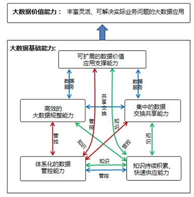 大数据基础能力主要包括大数据规整能力、数据管控能力、数据交换共享能力、知识沉淀积累和供应能力,以及对数据价值应用的支撑能力。