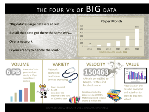 Variety——数据类型繁多,络日志、视频、图片、地理位置信息等等。类型的多样性也让数据被分为结构化数据和非结构化数据。相对于以往便于存储的以文本为主的结构化数据,非结构化数据越来越多,这些多类型的数据对数据的处理能力提出了更高要求。