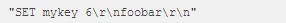 这个命令的最后一个参数是「6」。这个指明了后面数据,字符串「foobar」的字节数。注意即使这些数据被额外的二个字节大小的CRLF所截断。所有bulk命令的准确格式是:把最后一个参数替换成后面数据的字节数,接下来是数据本身和CRLF.为了能够让程序员更加清晰的理解,这是上面例子中客户端发送的字符串: