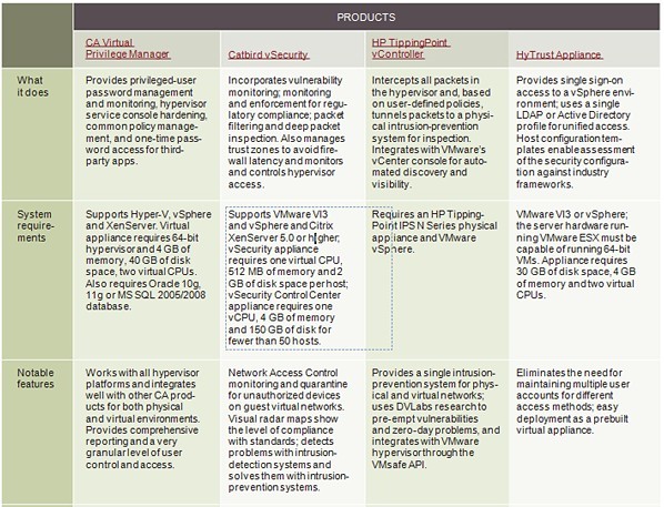 众多的工具都在关注虚拟网络。产品比如Catbird vSecurity通常具有与物理环境相对应的产品相同的特性,为虚拟机和虚拟交换机提供了防火墙、入侵检测以及入侵防护设备。