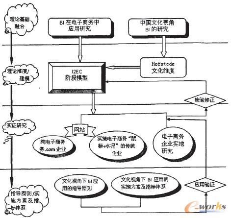 4)采用定性分析和定量分析相结合的方法、案例研究与现场观察实验研究相结合方法,在对中国文化视角下商务智能(BI)应用I2EC阶段模型进行实证分析、理论分析和归纳总结的基础上,归纳出在我国电子商务企业中应用商务智能(BI)的指导原则和可操作性强的实施方案及其量化指标体系。