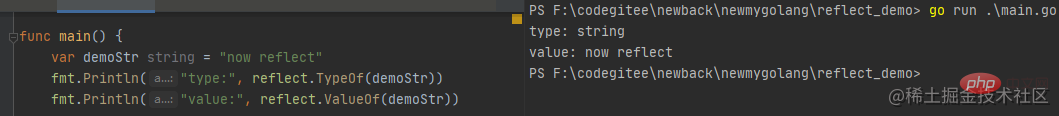 fmt.Println("value:", reflect.ValueOf(demoStr)) var res string