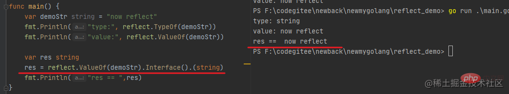 res = reflect.ValueOf(demoStr).Interface().(string)