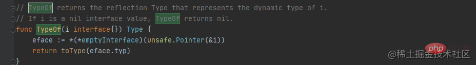 殊不知,此处的 reflect.Value 也是可以转换成 reflect.Type ,可以查看源码中 reflect\value.go 的 func (v Value) Type() Type {