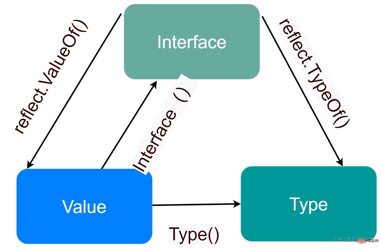 其中 reflect.Value ,reflect.Type ,和任意数据类型 可以相互这样来转换