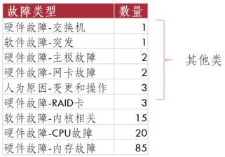 注:对于数量特别少的故障类型,如果依靠专家知识分析已有的工单日志能够一一正确区分的话,那么可以人为地抽象出独一无二的故障特征,并编写模块实现自动化分类。