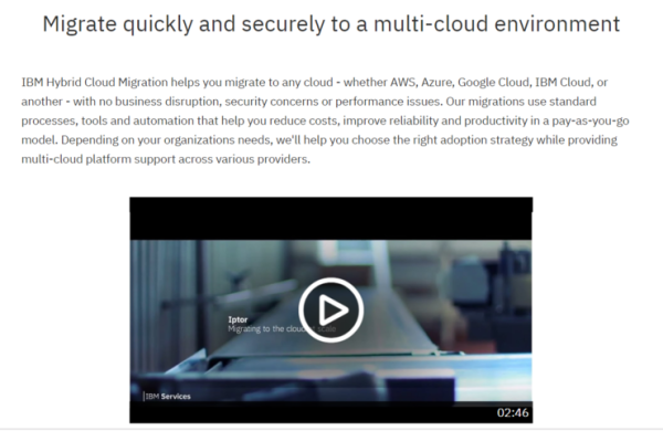 IBM强调:可以帮客户迁移到AWS、Azure、 Google Cloud、IBM Cloud和其他平台上。如图。