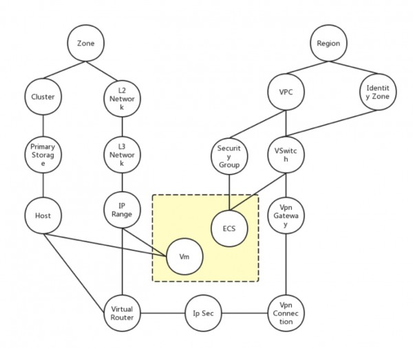 我们在设计私有云平台时,会建立完整的私有云数据模型,如快照、磁盘、云主机、VPC、路由器等,它们之间存在千丝万缕的关系。同样,在设计公有云平台时,也要建立相应的数据模型。那么在设计混合云时,就必须同时建立这二者的模型,并且必须是完整的,因为存在许多关联关系,导致缺少任意一个资源的模型,都不能算完整。