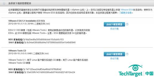 如果我们要下载管理程序,只需要展开管理程序然后就可以下载相应的产品了。你可以选择使用VMware提供的下载管理器或者手动下载安装镜像。