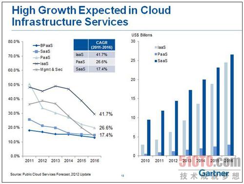 所有虚拟化工作负载中50%以上基于x86架构。预计到2015年这个比例会增加到75%.Gartner 声称,这是一种颠覆性创新,正在改变IT与企业之间的关系,可以跟踪了解服务级别和使用情况。