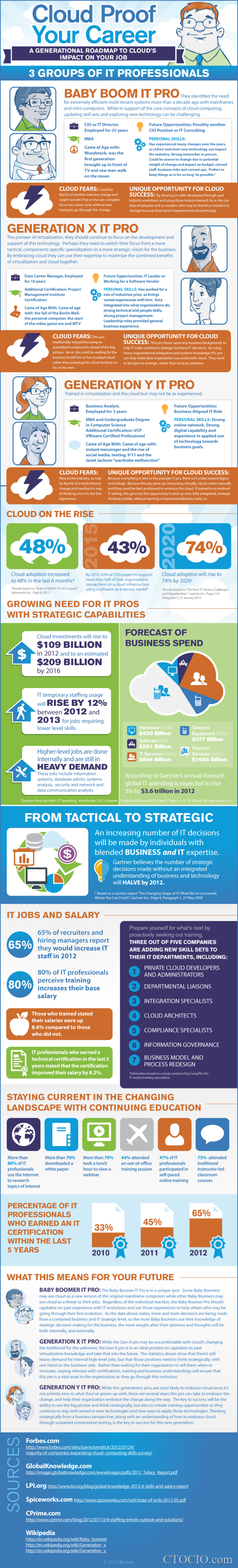 云计算服务公司Bluelock最近将云计算对IT专业人士的职业影响绘制成了一张信息图。对于身处移动和web service开发领域的研发人员来说,云计算的概念和价值已经深入人心,但是对于很多其他领域的IT技术员工来说,对于云计算的理解还会时常犯晕,下面这张信息图也许能让您暂时放下手头的事务,抬头看看未来的云计算世界。