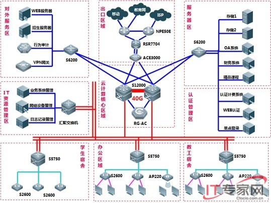 为加快数字校园和数据中心的建设步伐,海南工商职业学院提出了“整体规划,分步实施”、“应用为本,注重实效”和“可持续发展”的策略,积极抢占教育跨越式发展的制高点。随着学院近年来知名度的大幅提升,学校生源逐年增长,预计在未来2~3年内,全校师生总人数扩展到上万个用户接入点,原有网络的容量已经呈现出饱和状态。同时,因为需要将全体师生的工作、学习、生活纳入校园网的统一融合管理中,校园网所承载的业务类型也将在未来一段时间内大量的发生变化。最后,海南工商职业学院对新一代数据中心的规划,将以虚拟化建设为核心,逐步完成教育教学的私有云平台,而这种动态的基础结构就需要高速、稳定、安全的网络基础设施以作支撑。为解决以上这些需求,学院将核心交换平台聚焦在新一代的40G/100G产品。