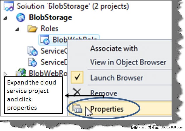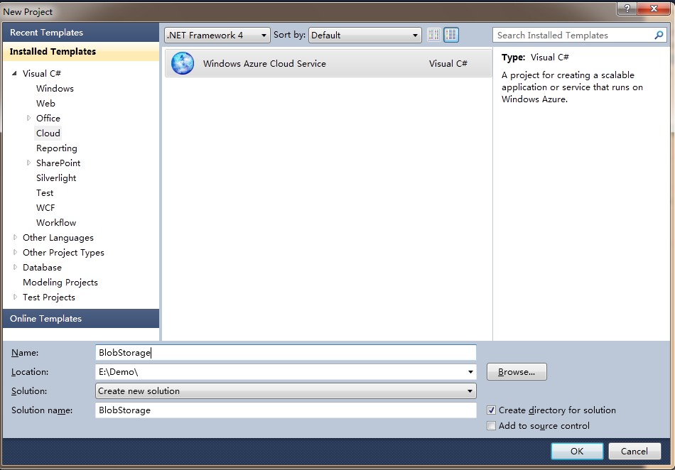 第三步:新建一个云服务命名为BlobStorage,如下图: