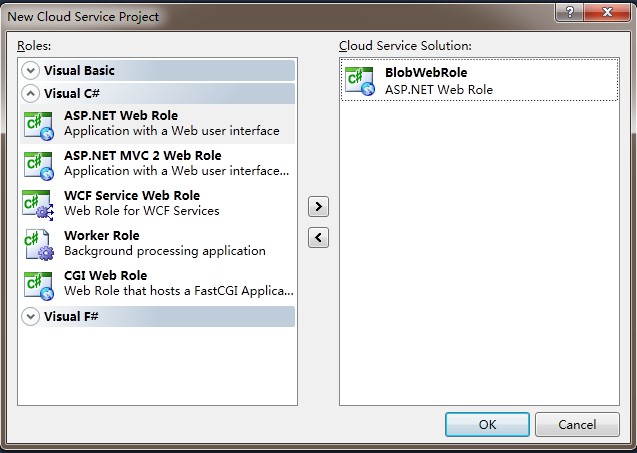 使用简单的ASP.NET Web Role,并更名为BlobWebRole,如下图: