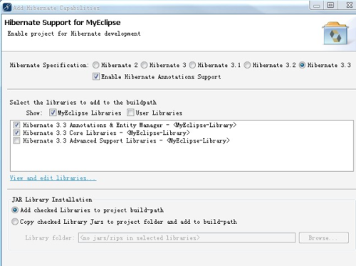 如果需要用到在实体类上添加注释的话那么选中紧挨着的add Hibernate Annotations Support