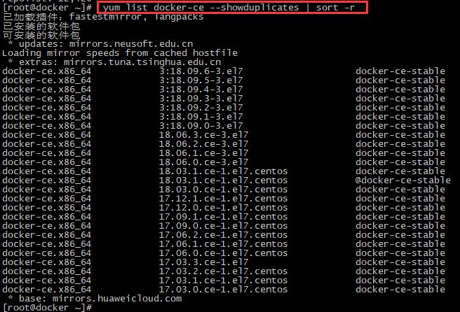 # yum list docker-ce --showduplicates | sort -r