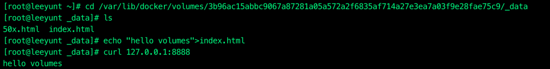 此时发现该目录下的文件内容与容器中/usr/share/nginx/html/目录下的文件内容一致,这是因为挂载一个空的数据卷到容器中的一个非空目录中,这个目录下的文件会被复制到数据卷中。