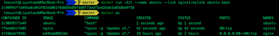 $ docker run -dit --name ubuntu --link nginx1:mylink ubuntu bash