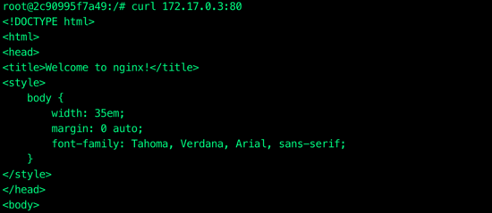注意:默认情况下,ubuntu容器中没有安装curl命令,需要手动安装下,安装命令如下: apt-get update 和 apt-get install curl 。