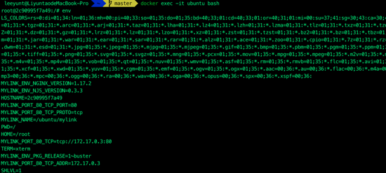 可以看到docker为nginx创建了一系列环境变量。每个前缀变量是MYLINK,这就是刚刚给连接取得别名。开发者可以使用这些环境变量来配置应用程序连接到nginx。该连接是安全、私有的。