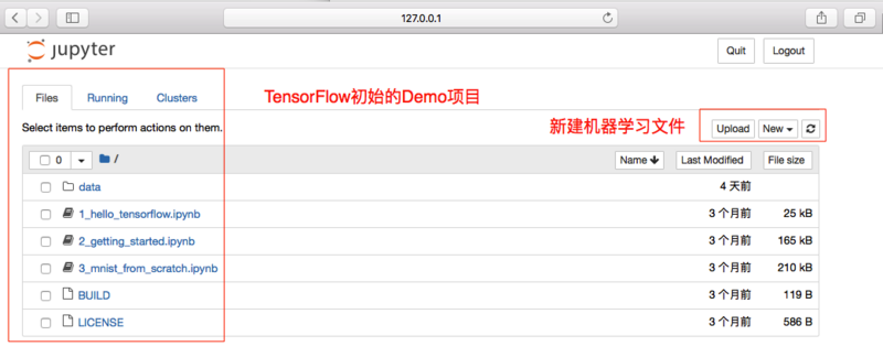 #关闭tensorflow容器 docker stop corwien-tensortflow #开启TensorFlow容器 docker start corwien-tensortflow #浏览器中输入 http://localhost:8888/