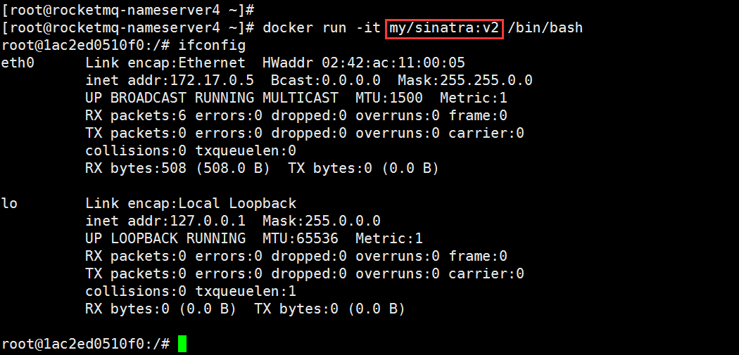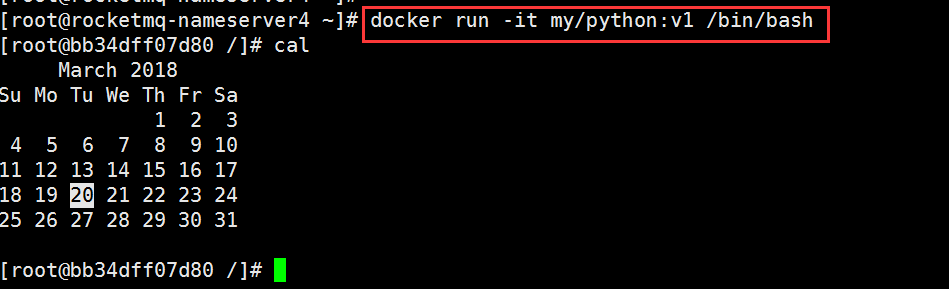 [root@rocketmq-nameserver4 ~]# docker run -it my/python:v1 /bin/bash