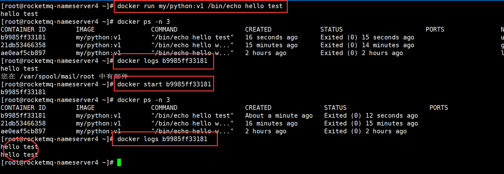 [root@rocketmq-nameserver4 ~]# docker run my/python:v1 /bin/echo hello test hello test