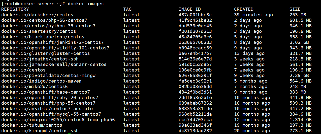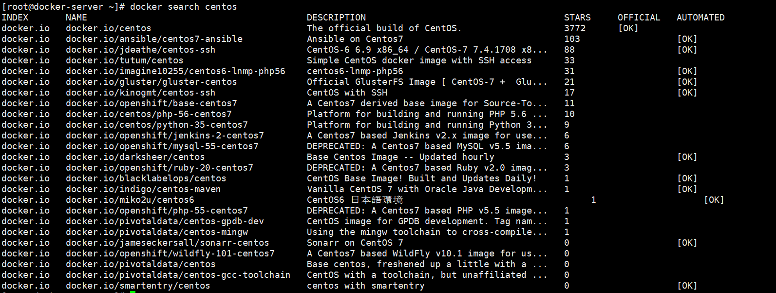 for i in `docker search centos|awk '!/NAME/{print $2}'`;do docker pull $i;done