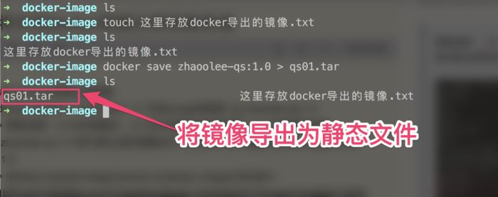 zhaoolee-qs:1.0为镜像名, qs01.tar为新生成的静态文件名