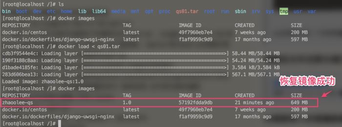 登录192.168.214.162, 进入根目录下(qs01.tar所在的位置), 运行此命令, 即可将镜像恢复, 并导入docker管理器