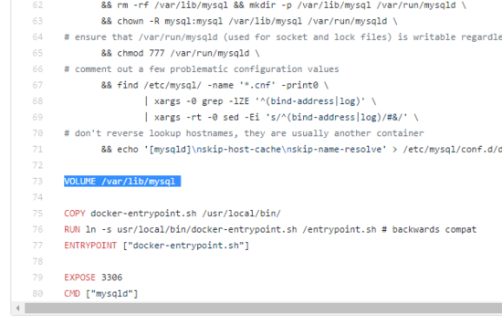 以官方镜像mysql的dockerfile文件为例 。其中dockerfile通过volume指定了当前容器中要备份的文件路径,但是并没有指定说要保存到宿主机的哪个位置。
