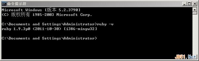 打开CMD窗口,运行 ruby -v 显示ruby当前版本号。如图