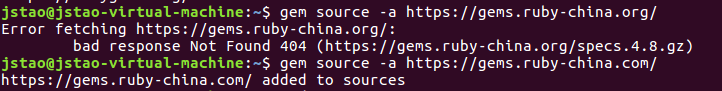 error fetching https://gems.ruby-china.org/: bad response not found 404 (https://gems.ruby-china.org/specs.4.8.gz)