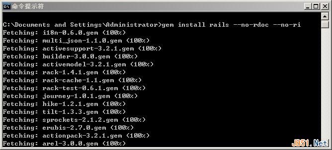 如不想安装文档文件,可以输入:gem install rails --no-rdoc --no-ri