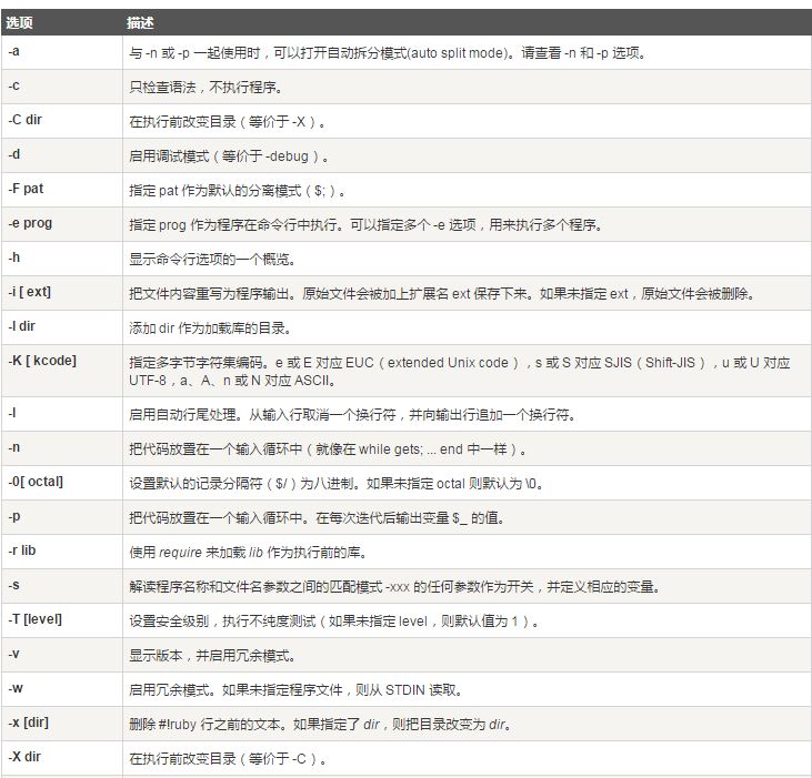 ruby 命令行选项
