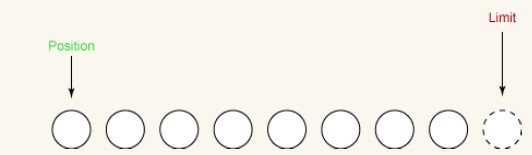 在 Buffer 上进行的读写操作都不能越过这个下标。当写数据到 buffer 中时, limit 一般和 capacity 相等,当读数据时, limit 代表 buffer 中有效数据的长度。